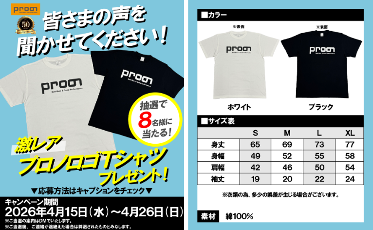この度、当社の創業50周年を記念して、プロノ公式Instagramにて限定Tシャツのプレゼントキャンペーンを実施しますので、お知らせ致します。